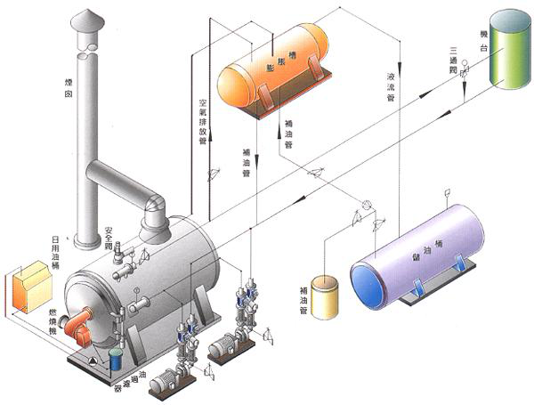 燃气导热油炉循环供热系统由:炉体、循环泵、系统管道、阀门及高低位槽等组成。其中锅炉本体是导热油供热系统关键的核心设备,为此,重点介绍我公司所生产的第三代具优势的导热油锅炉本体优势。