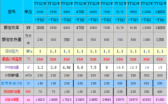 燃气导热油炉YY(Q)W 250~1200 ×104kcal/h型号规格参数表
